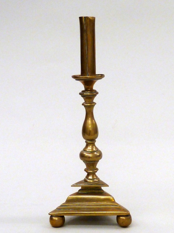 Koperen kandelaar met driehoekige voet