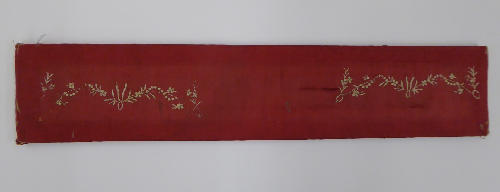 Rood speelgoedantependium met florale motieven