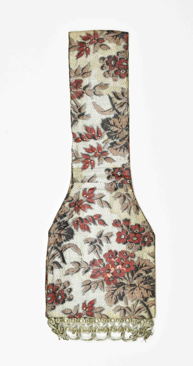 Witte kindermanipel met opgedrukte bruine boeketten met rode bloemen