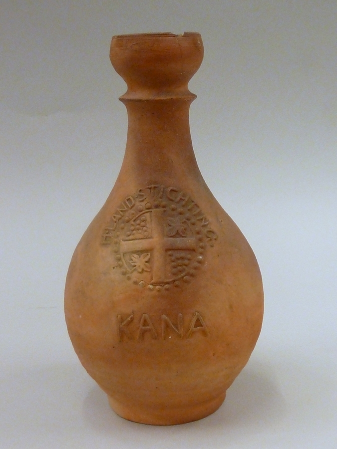 Kruik met "Kana", kruis in cirkel met wijnbladeren en druiven