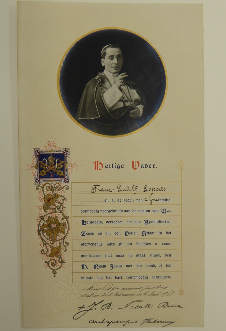 Apostolische huiszegen met foto Benedictus XV voor Franz-Ludolf Loporte en familie