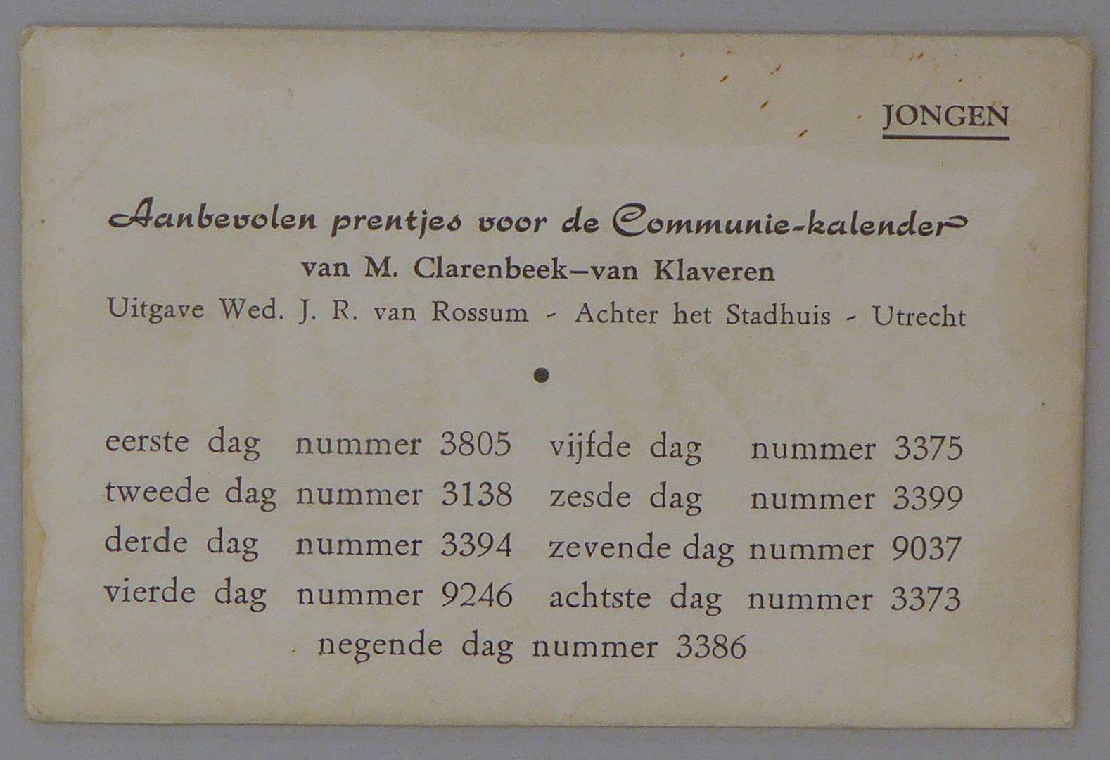 Prentjes voor de communiekalender bedoeld voor een jongen
