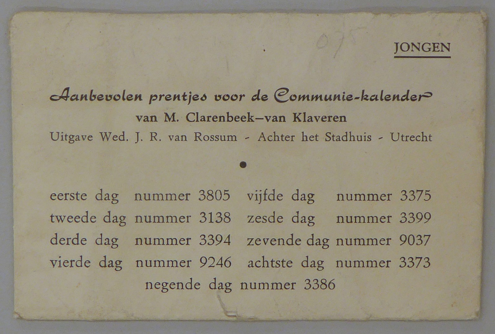 Prentjes voor de communiekalender bedoeld voor een jongen