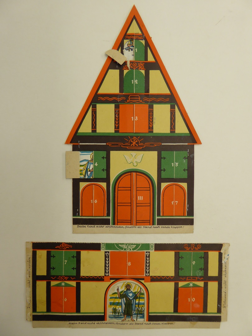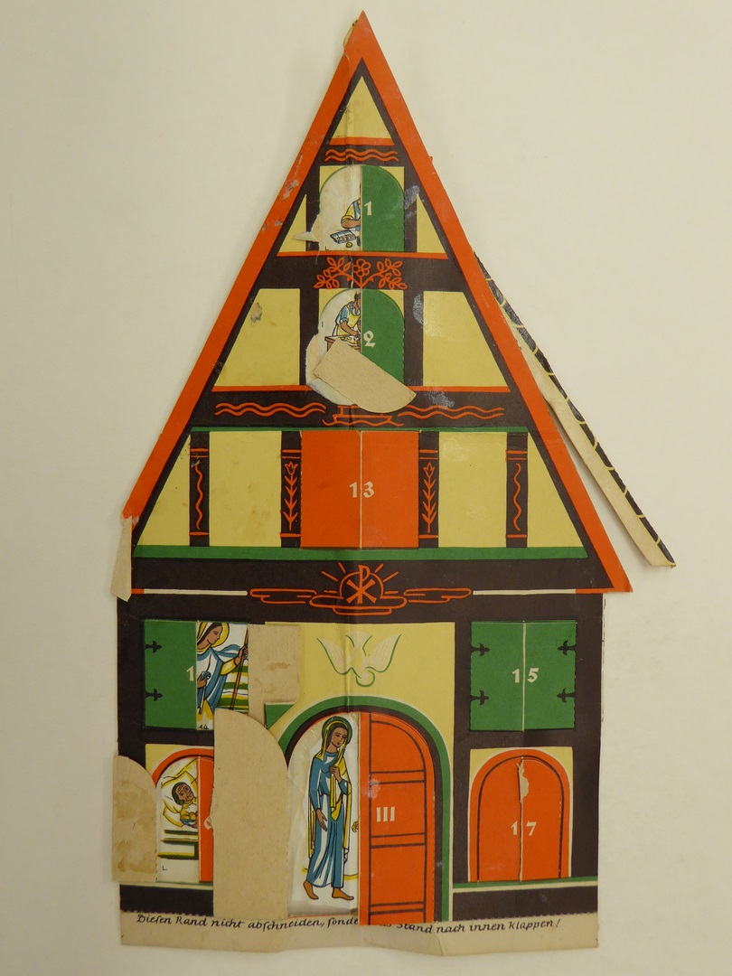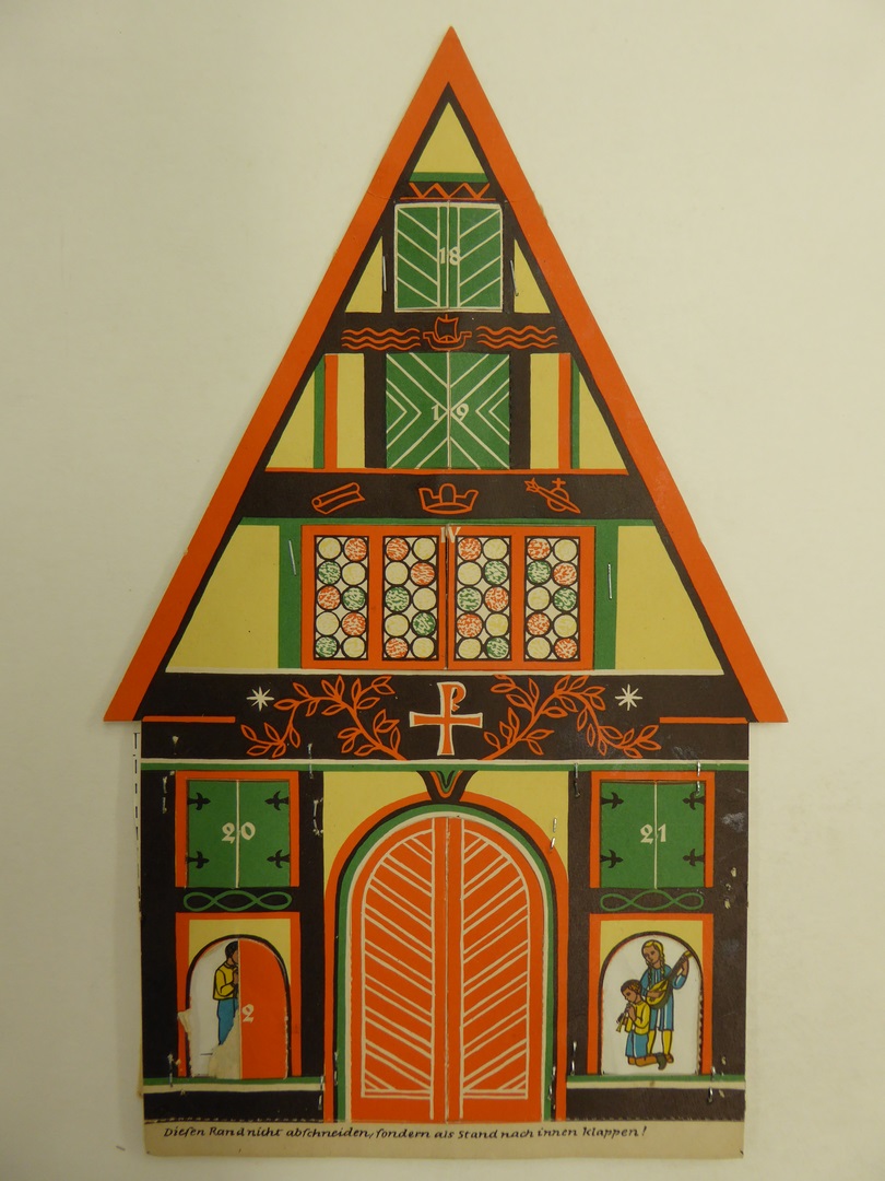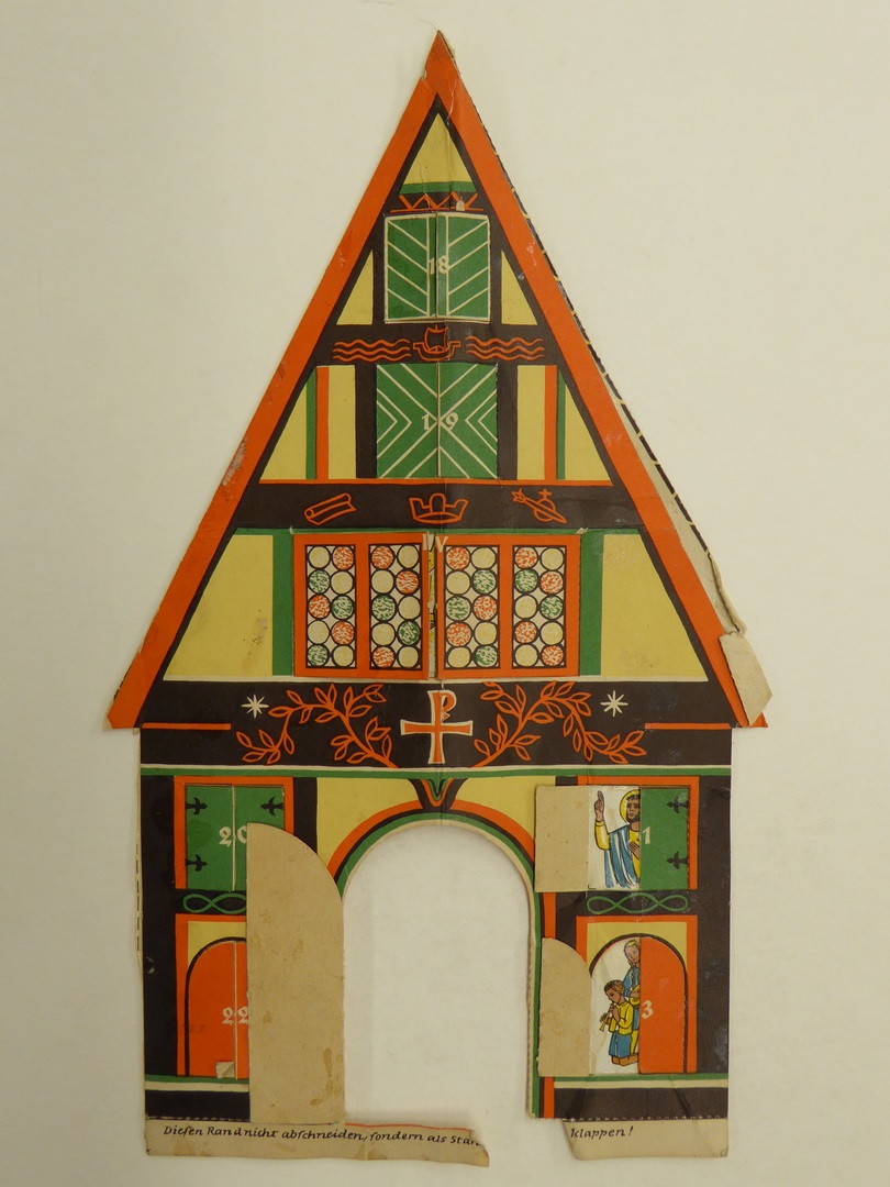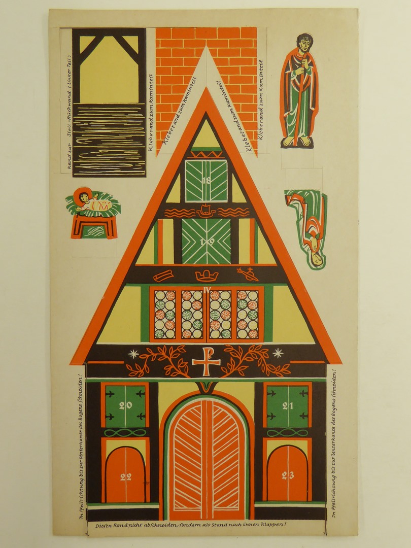 Onderdelen in elkaar te zetten adventskerkje, ten dele geniet, ten dele gelijmd