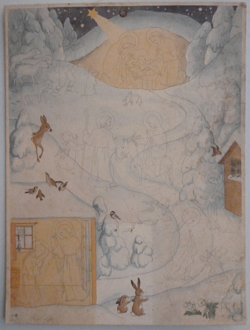Adventskalender met kerstvoorstelling, nog niet ingeplakt