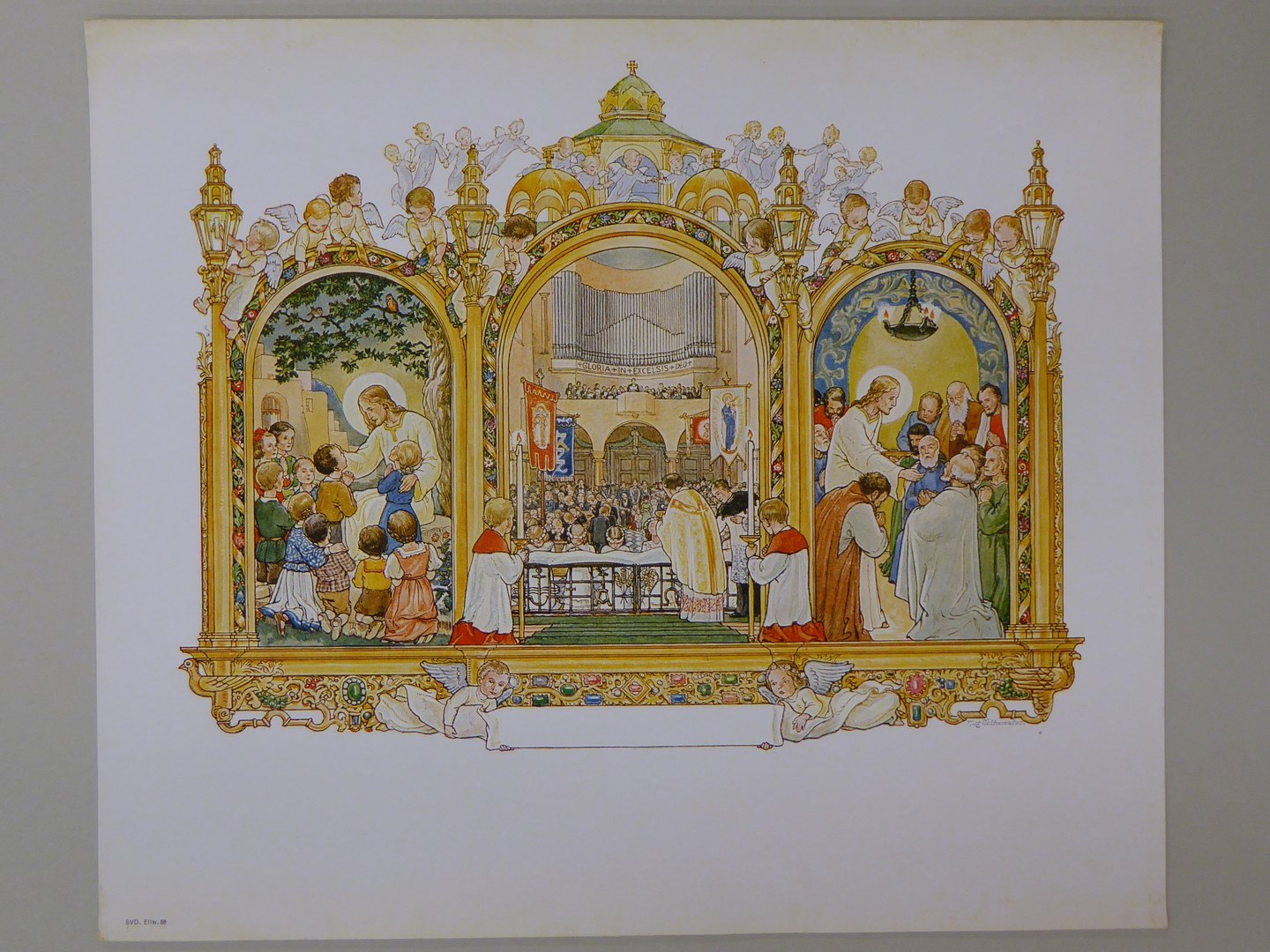 Plaat ter herinnering aan Eerste Communie met daarop een 'drieluik'