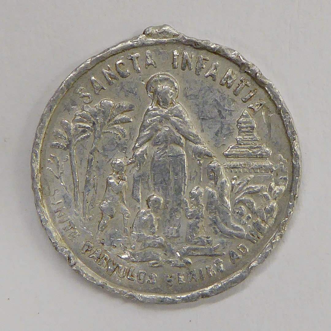 Scapulierpenning met Maria Onbevlekt Ontvangen, kz. met "Sancta Infantia", Maria en kinderen