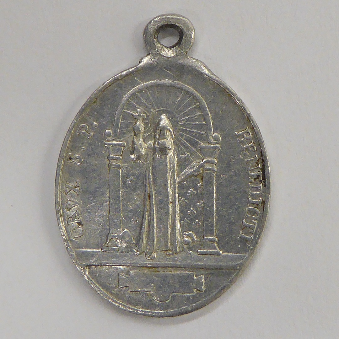 Scapulierpenning met H. Benedictus, kz. kruis