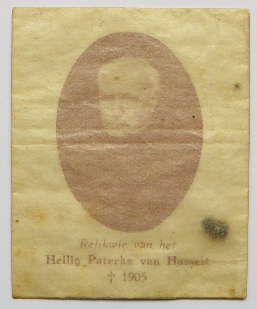 Stofreliek van "... het Heilig Paterke van Hasselt +1905" (P. Valentinus Paquay) met portret