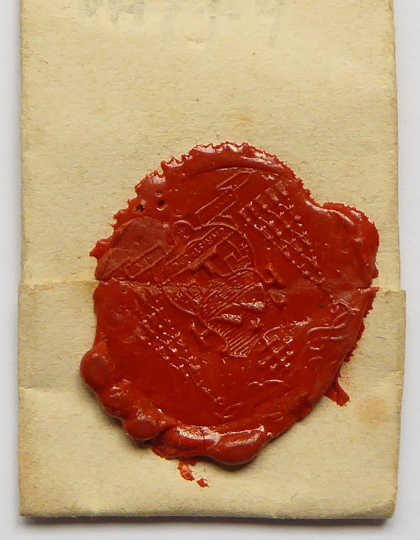 Verzegelde papieren wikkel met "Ex Loco Flagellationis D.N.J.C."