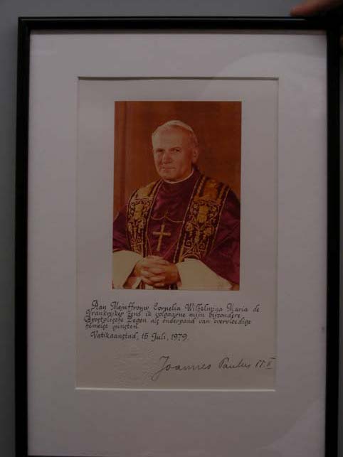 Ingelijste foto van een zegenende paus Joannes Paulus II bedoeld als apostolisch zegenformulier
