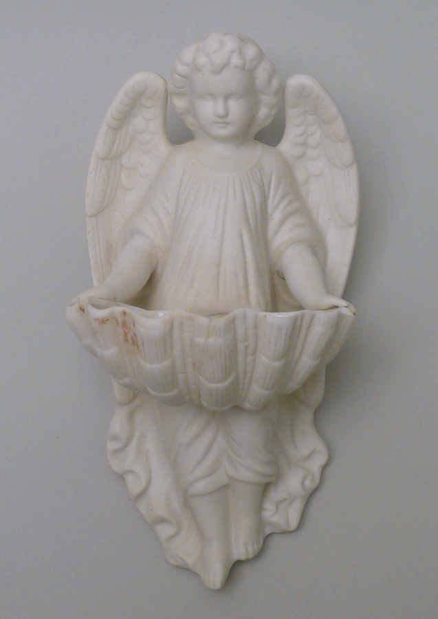 Wijwaterbak, engel met bakje in schelpvorm