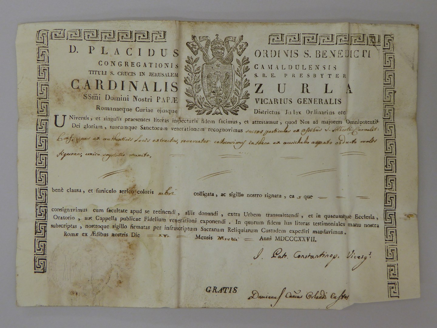 Echtheidsverklaring bij reliek van H. Albertus van Sicilië