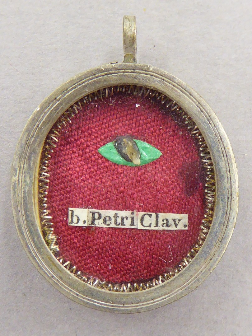 Reliekmedaillon met reliek van Z. Petrus Claver (1580-1654), Spaanse jezuïet, missionaris, priester en patroonheilige van Colombia
