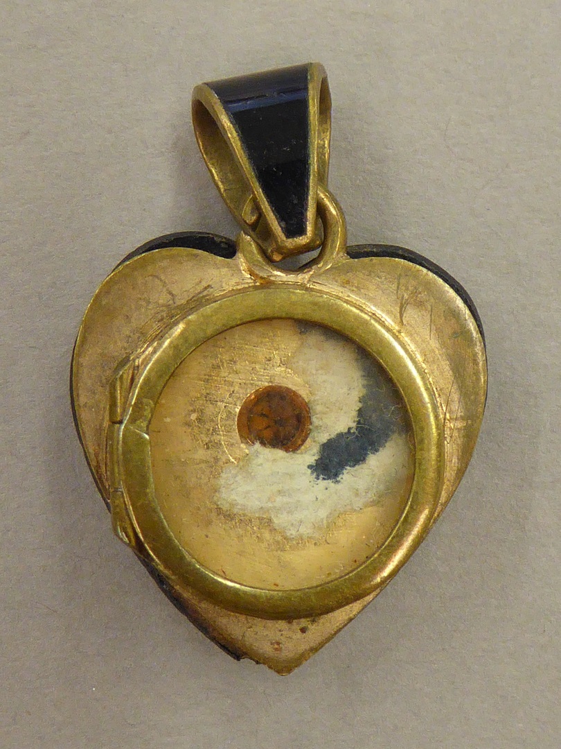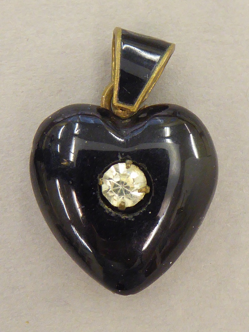 Reliekmedaillon in vorm van zwart hartje met glassteen