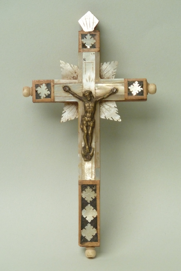 Kruis ingelegd met parelmoer, met koperen corpus
