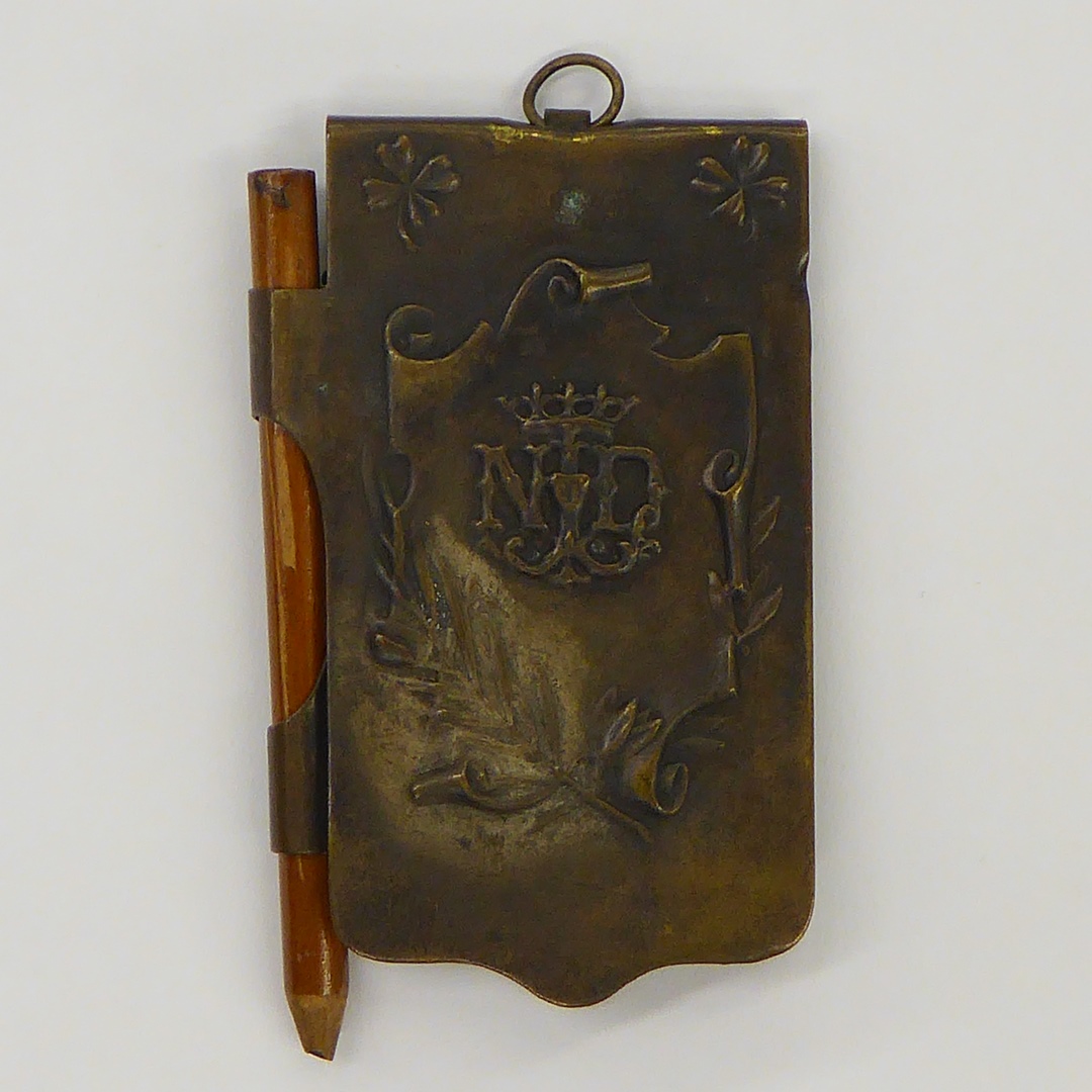 Zilverkleurige notitieblokhouder met verschijning Maria aan H. Bernadette te Lourdes
