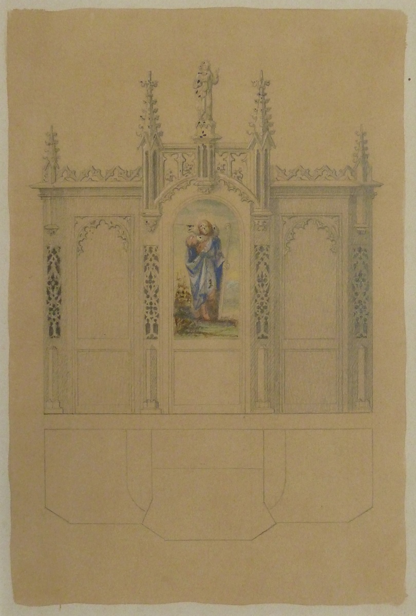 Ontwerptekening voor biechtstoelen met Goede Herder