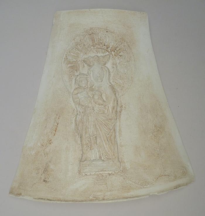 Afgietsel van reliëf met Maria met kind, van klok van de R.K. Christophoruskerk te Schagen, gegoten door Herman in 1478