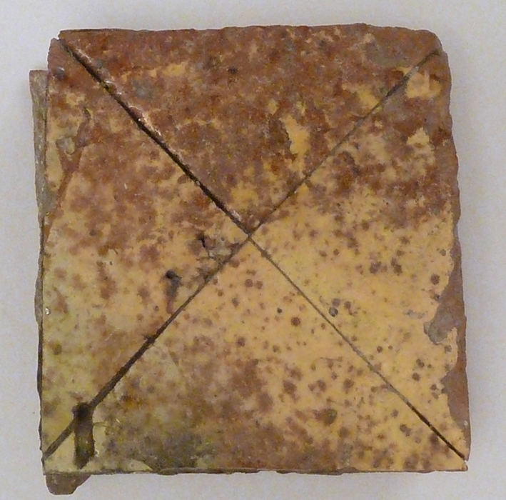 Vloertegel met gele glazuur en vier aaneensluitende vlakken