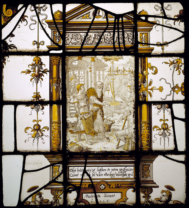 Glas met spijziging hongerigen en spreuk "moderata durant" van Johannieter Wouter van Bijler