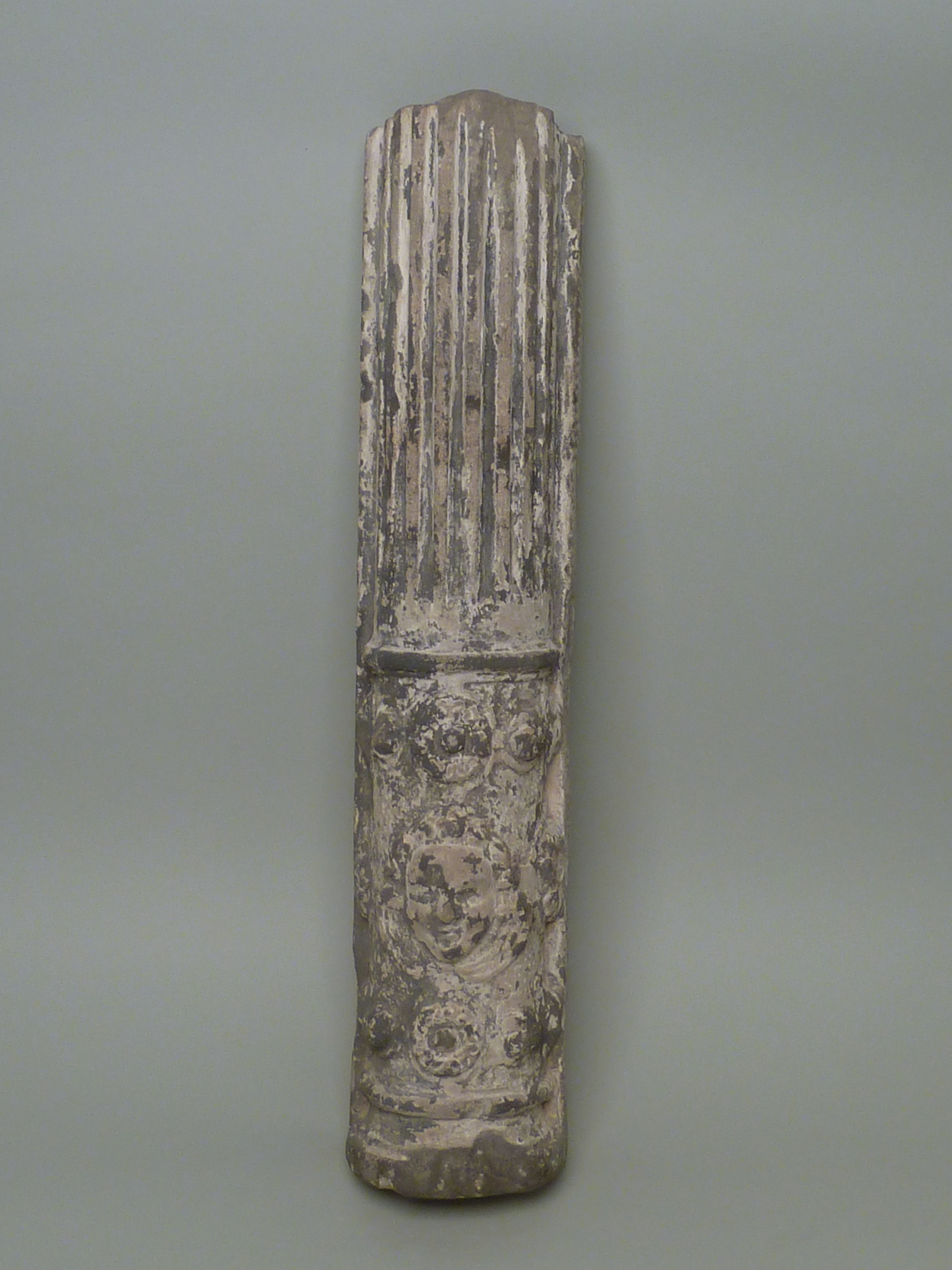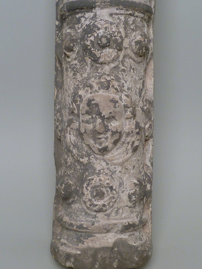 Fragment onderstuk halfzuil met cherubkopje met eromheen rozetjes