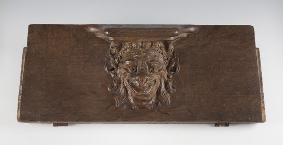 Zitplank koorgestoelte met misericorde waarop satyrskop