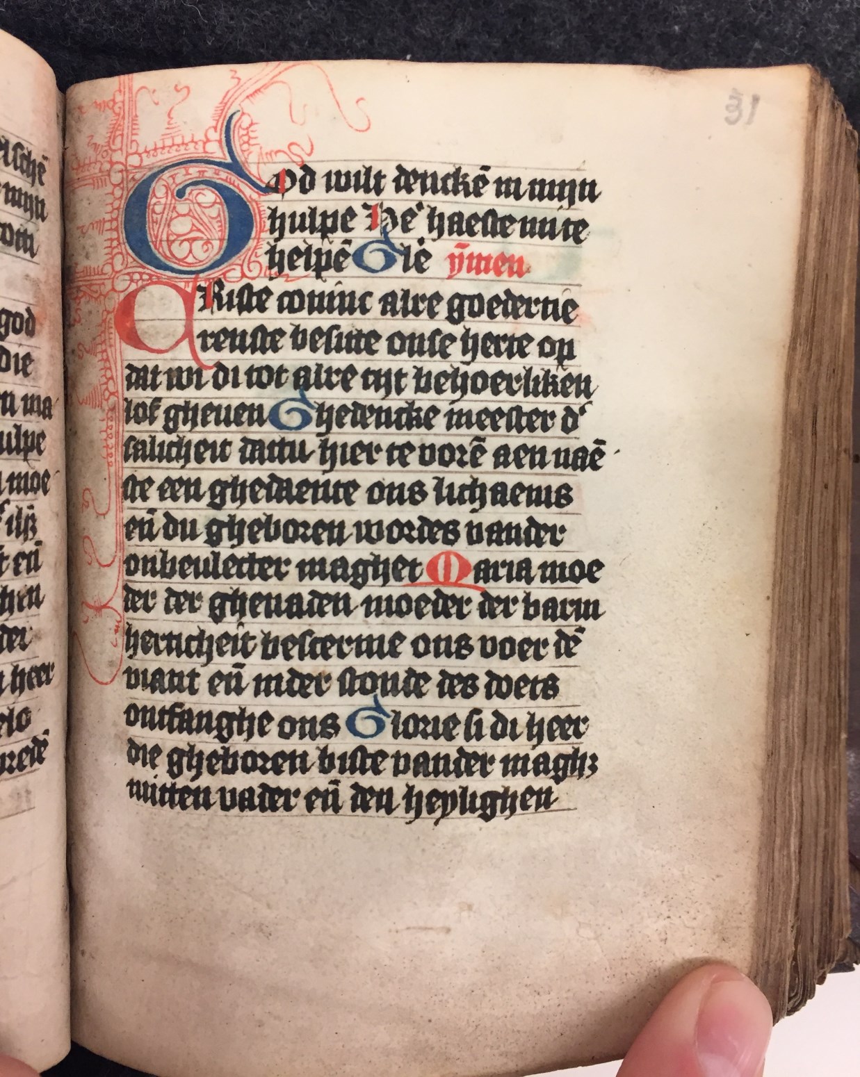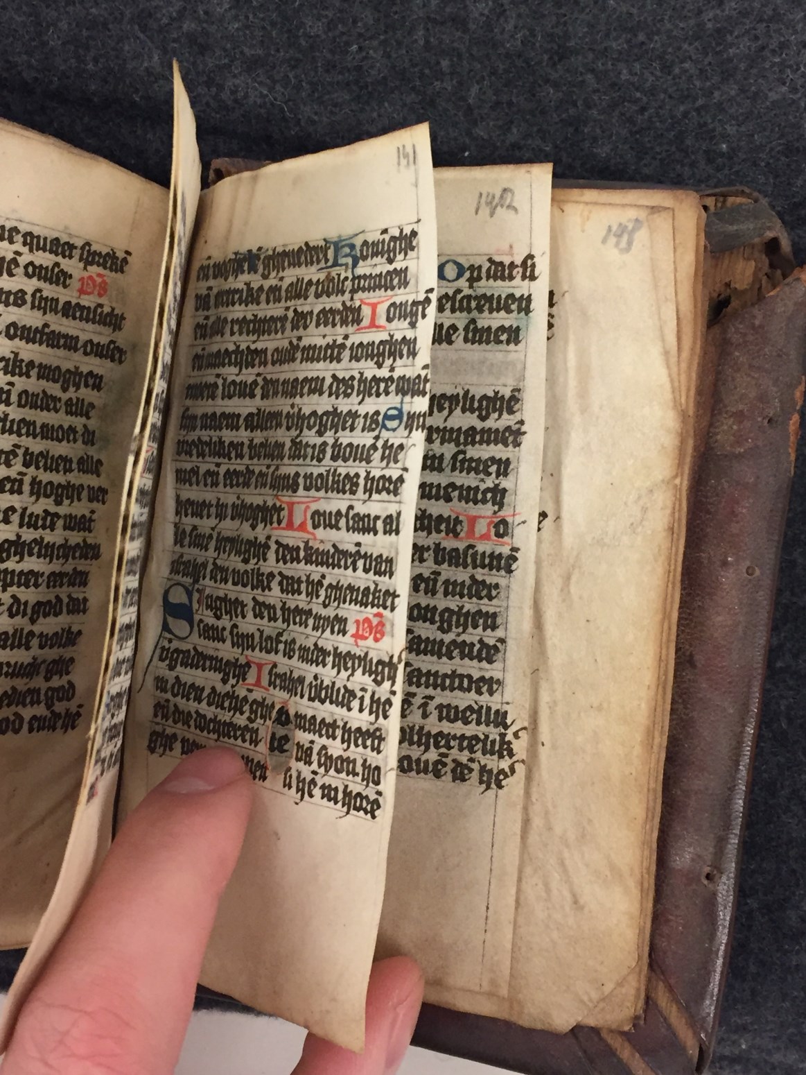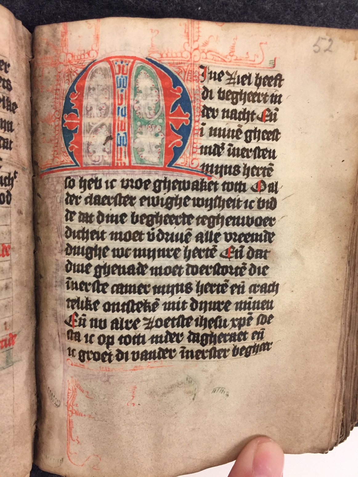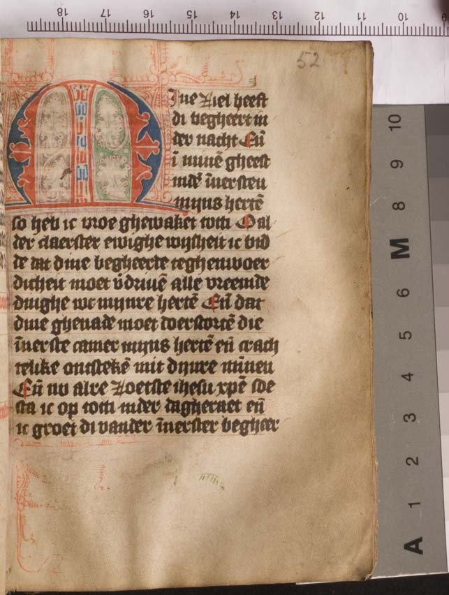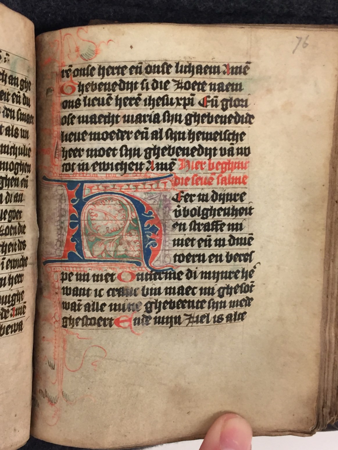 Gebeden en getijdenboek uit het midden van de 15de eeuw. Gumbert vermoedde een Noord-Hollandse oorsprong, Wüstefeld durfde het bouder te stellen door Haarlem met enige zekerheid te opperen. Het handschrift telt 146 folia, heeft enkele fraaie penwerkinitialen uitgevoerd in blauw en rood en zit nog altijd in de orignele band.