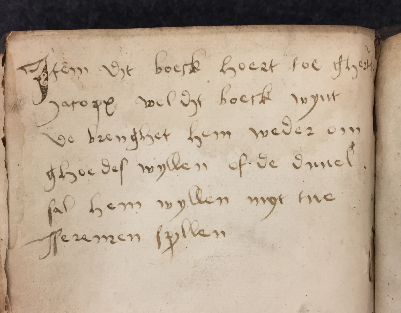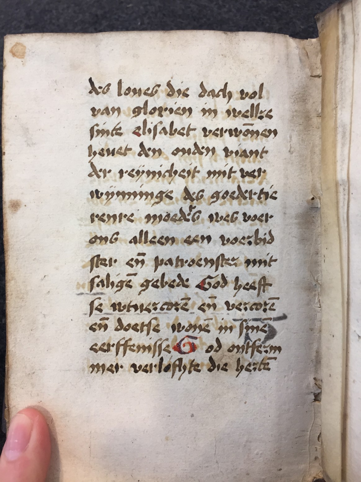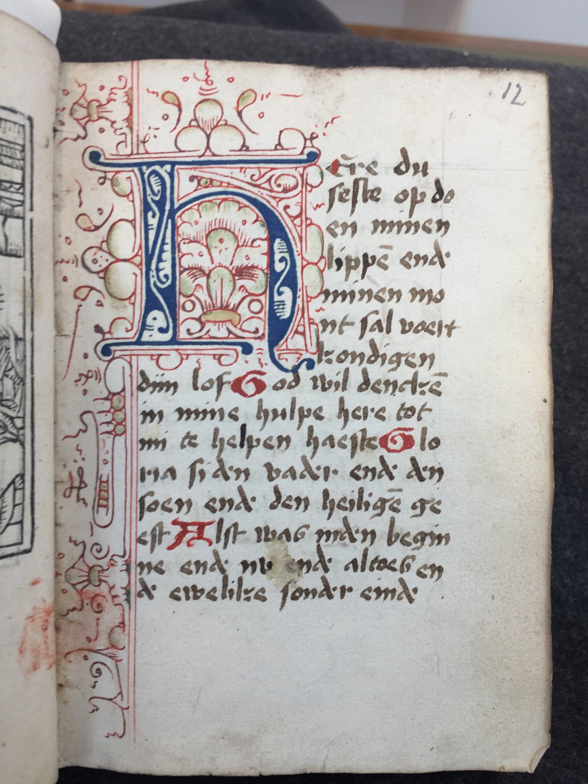 Een klein gebeden- en getijdenboek (octavo formaat), met een gedrukte kalender (incluis twee houtsneden van de Anunciatie, f. 11v). Gumbert durfde niet verder te gaan dan een 15de of 16de eeuwse datering. Wel vermoedde hij dat het boekje gebruikt is in Haarlem. Zeker is het gebruikt door ene Gerritje Jacobs (Ghertge Jacops) getuigende f. 230v ...