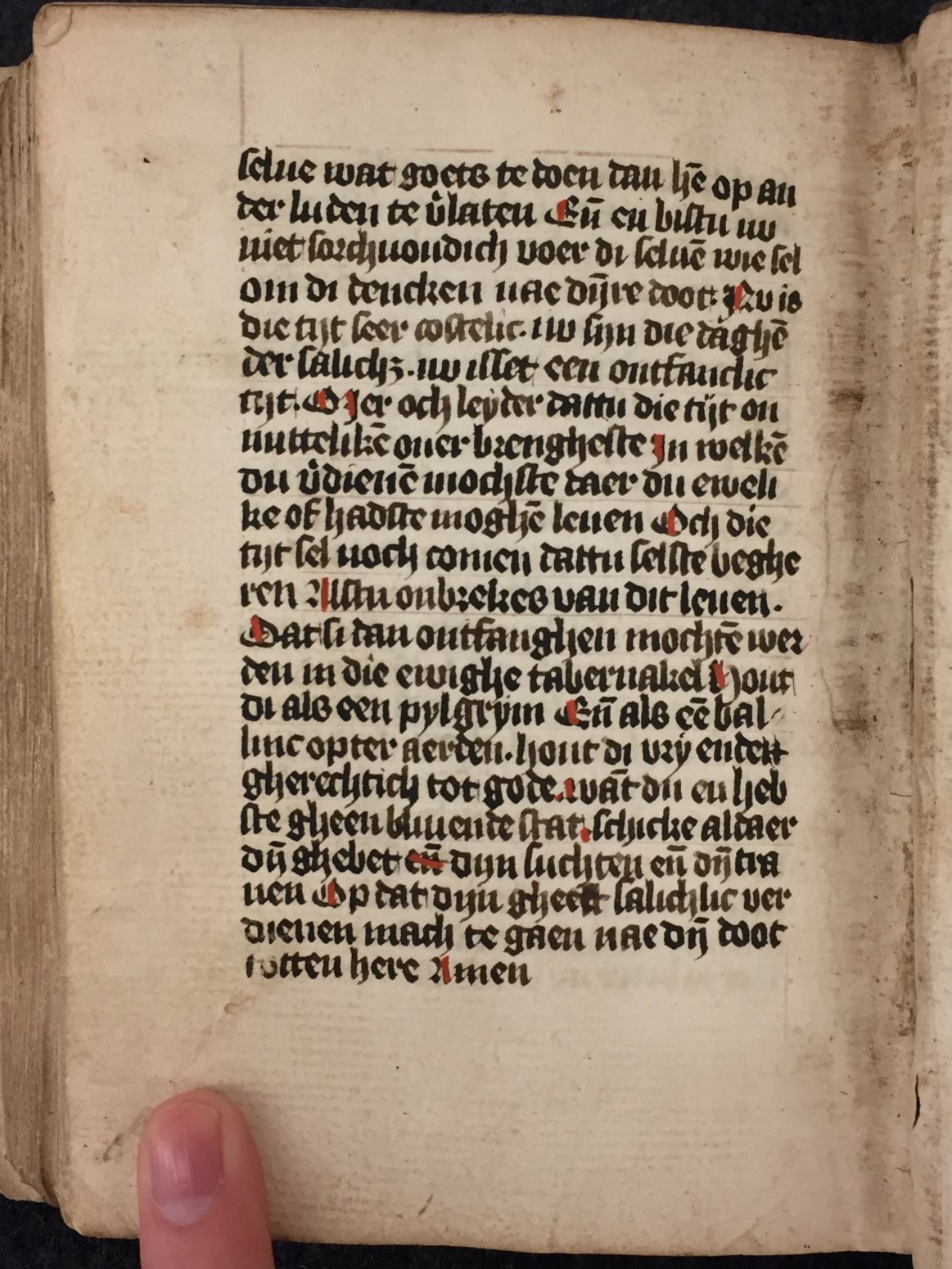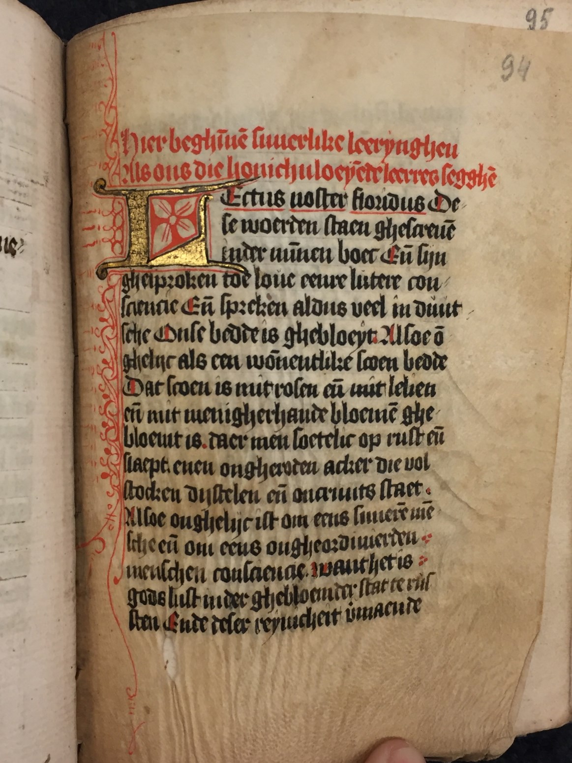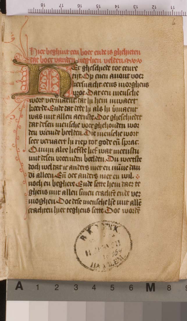 Een Middel-Nederlandse vertaling van das Buch von den neun Felsen (Rulman Merswin, ca. 1307-1382). Aangevuld met geestelijke tractaten en oefeningen. Gumbert vermoedde dat het boek in Haarlem gemaakt is, in het derde kwart van de 15de eeuw. Het handschrift telt in totaal 143 folia, heeft 2 penwerkinitialen uitgevoerd in goud en heeft nog altijd zijn ...