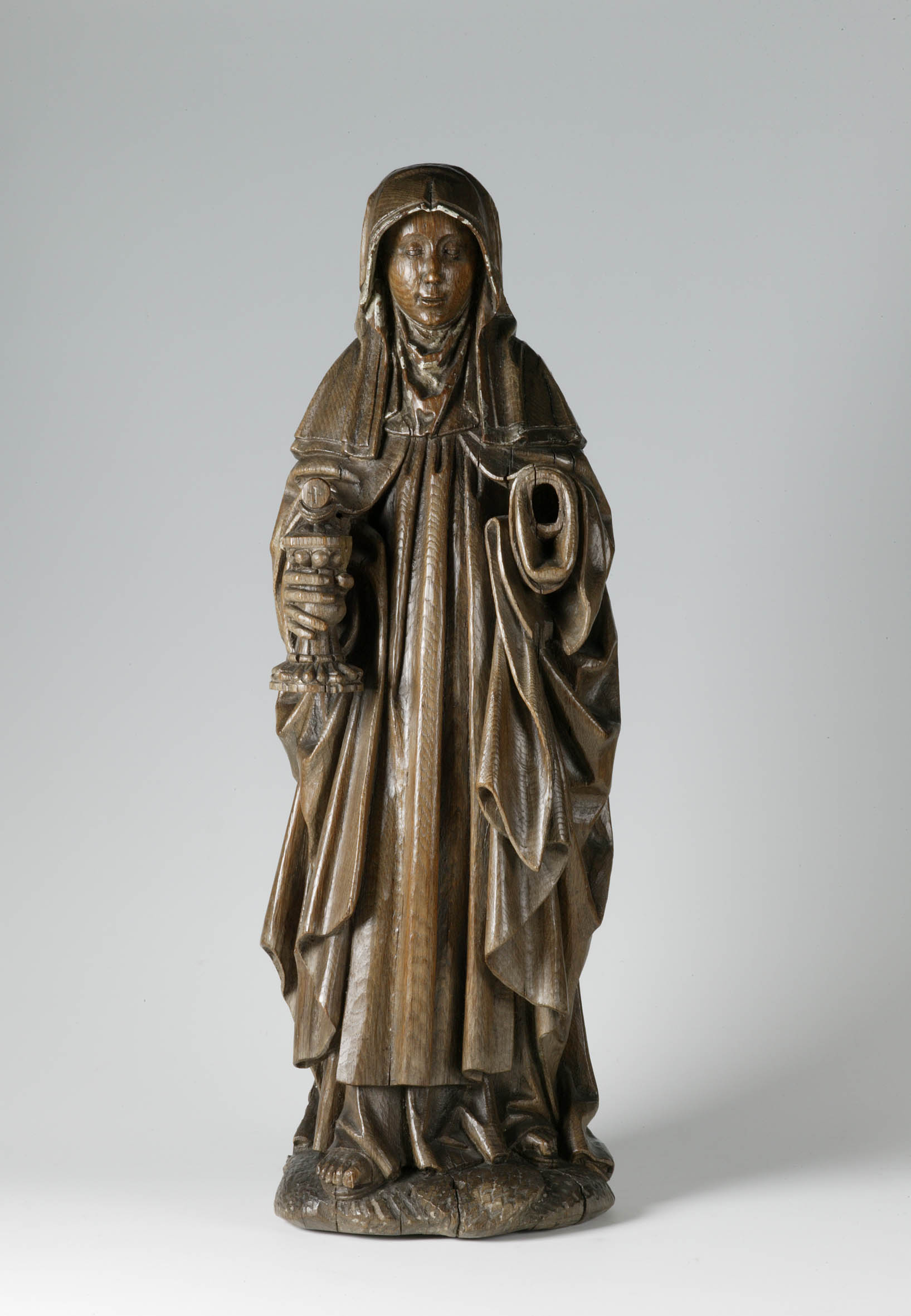 Clara, in rechterhand ciborie, in scapulier en mantel, attribuut (abdisstaf?) ontbreekt