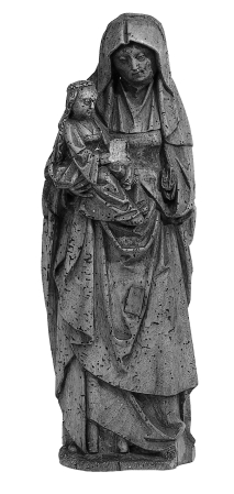Anna is staande voorgesteld, rustend op haar rechterbeen. Op haar rechterarm draagt zij de veel kleinere Maria, die op haar beurt het, grotendeels afgebroken, Christuskind op haar schoot houdt. Het kind heeft zijn beentjes gekruist. Anna staat op een met fijne groeven aangeduid grondje. Anna draagt een onder- en bovenkleed en daaroverheen een mantel, die ...