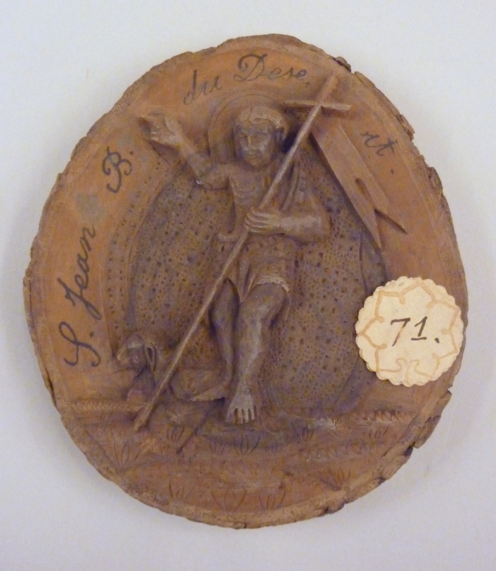 Johannes de Doper predikend in de woestijn, pelgrimsaandenken, tekst (Frans)