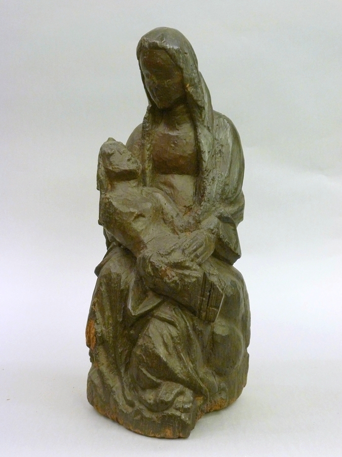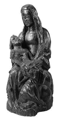 Maria zit op een rots. Het lijkt alsof ze met haar linkerknie op de grond steunt. Het lichaam van Christus ligt schuin op haar schoot, met het hoofd naar links. Zij ondersteunt het met haar rechterhand bij de rug. Haar linkerhand ligt op de lendendoek. Maria's hoofd is bedekt door haar mantel, die tevens over ...