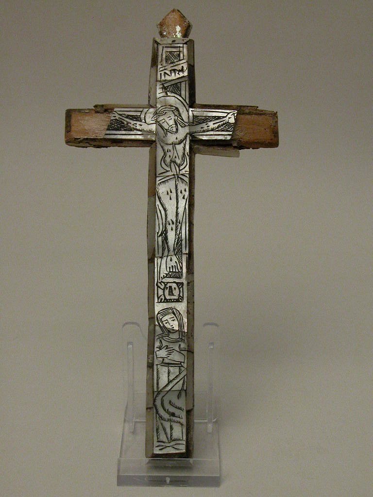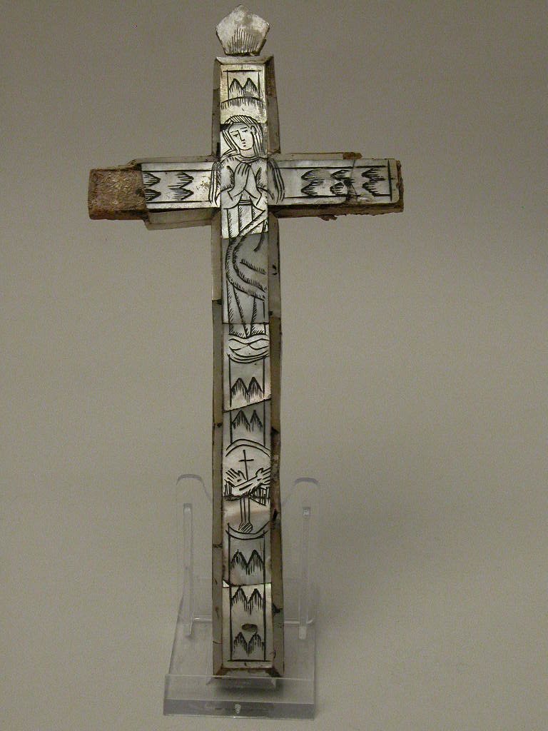 Houten kruis, opgelegd met gegraveerd parelmoer