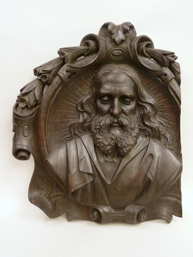 Reliëf in ornamentale omlijsting: kop van een man