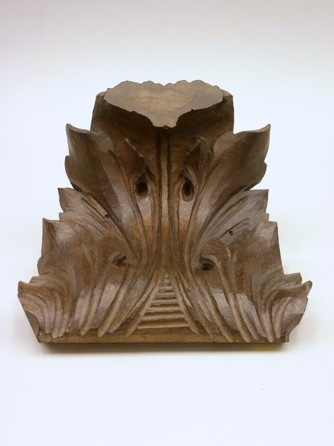 Onderdeel van preekstoel met gekruld bladmotief