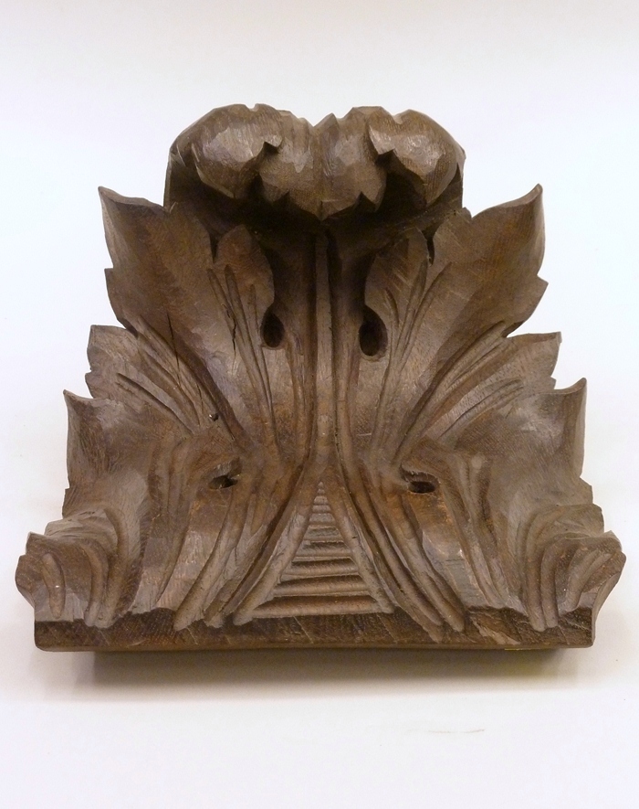 Onderdeel van preekstoel met gekruld bladmotief