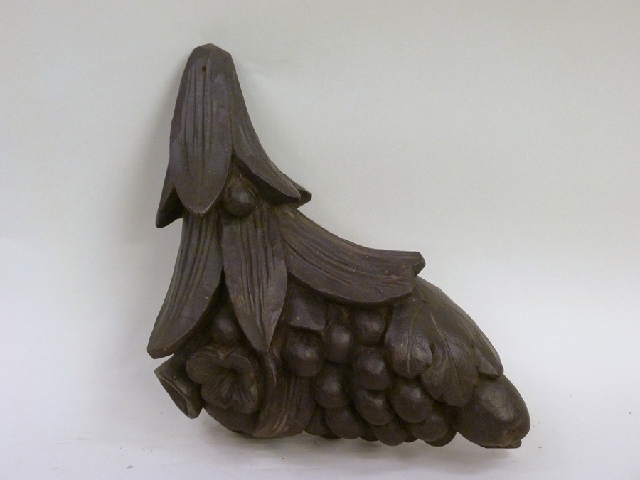 Onderdeel van preekstoel: hoekfragment met fruit- en bloemmotieven