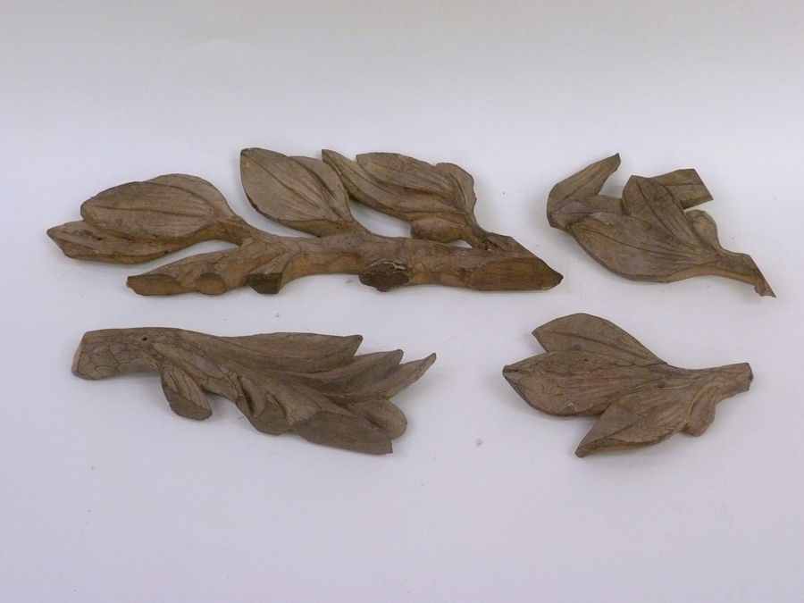 Onderdeel van preekstoel: tak met bladeren en bloemknoppen