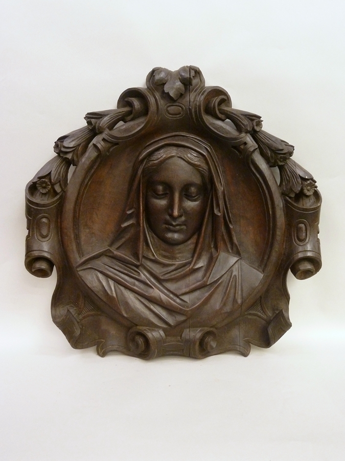 Reliëf in ornamentale omlijsting: kop van een vrouw