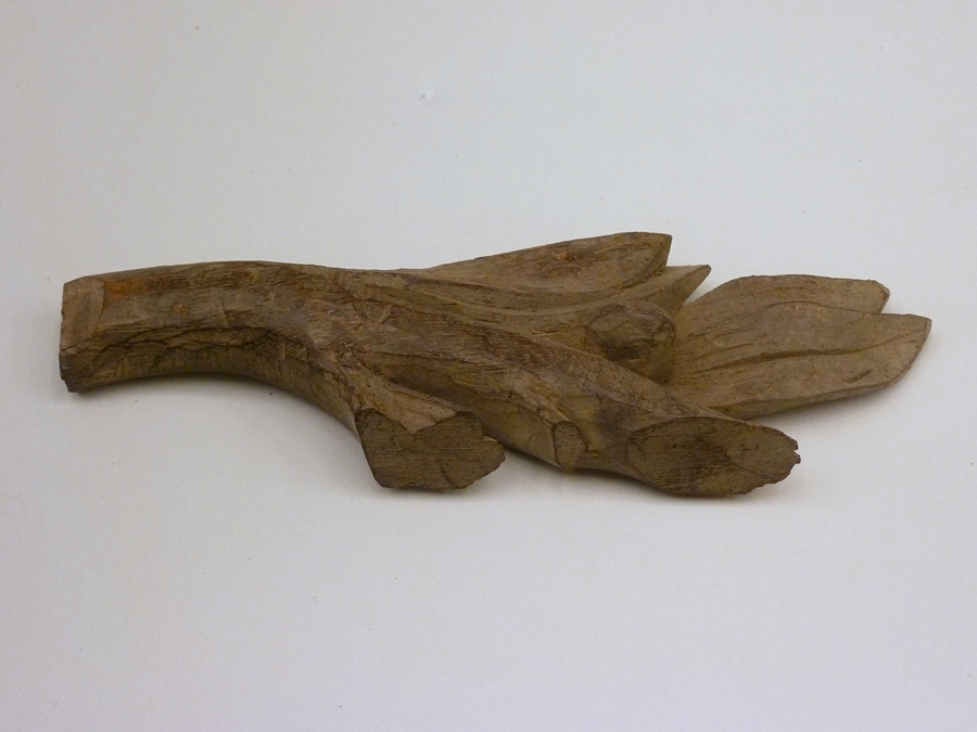 Onderdeel van preekstoel: tak met bladeren en bloemknoppen