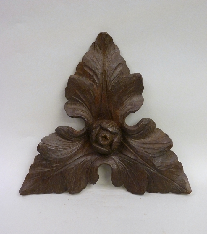 Onderdeel van preekstoel: drie bladeren en een bloemknop