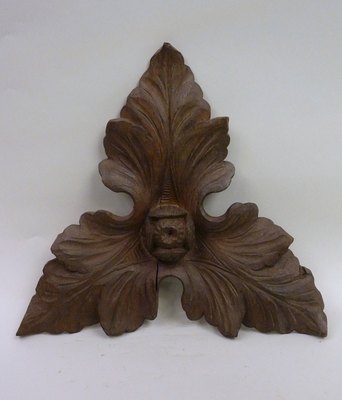 Onderdeel van preekstoel: drie bladeren en een bloemknop