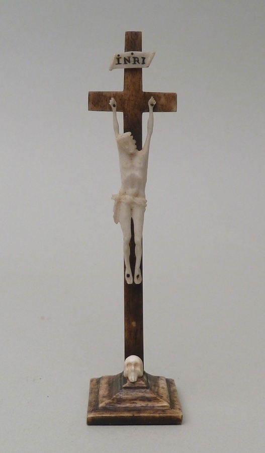 Donkerbruin houten kruisje met ivoren corpus