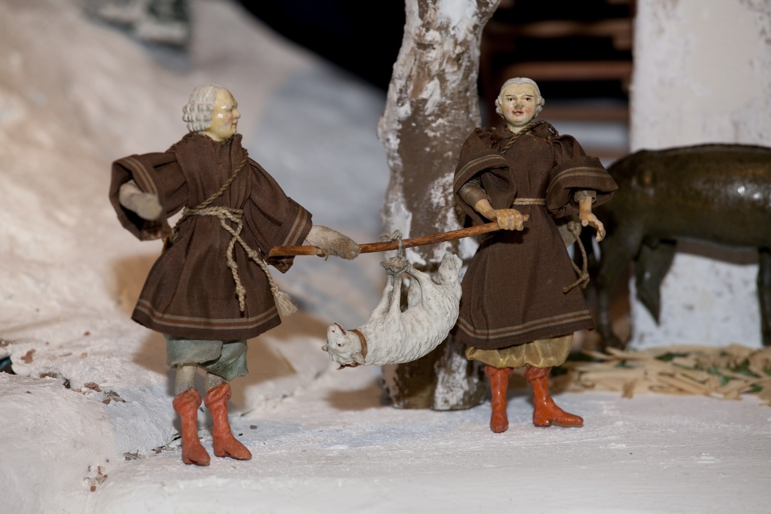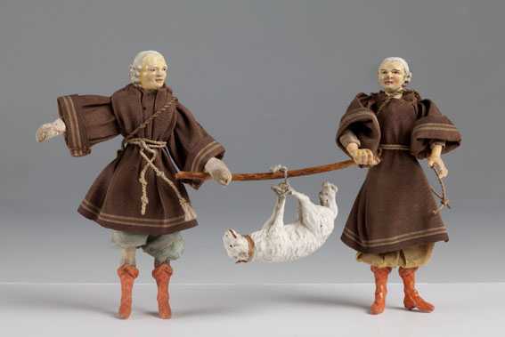 Twee herders met schaap aan draagstok