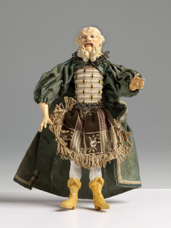 Man met baard, groene cape en gele laarzen