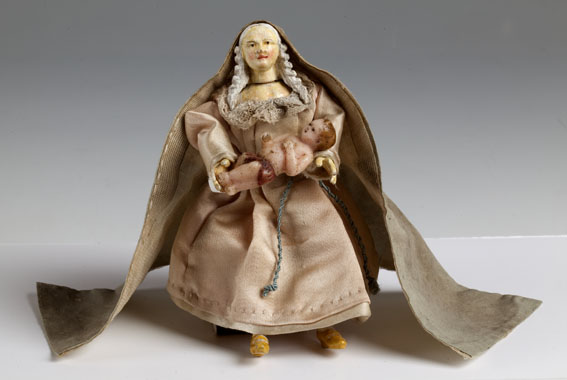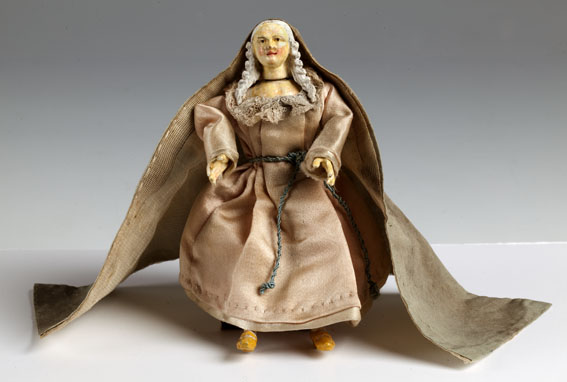 Maria met lange cape en gele schoenen