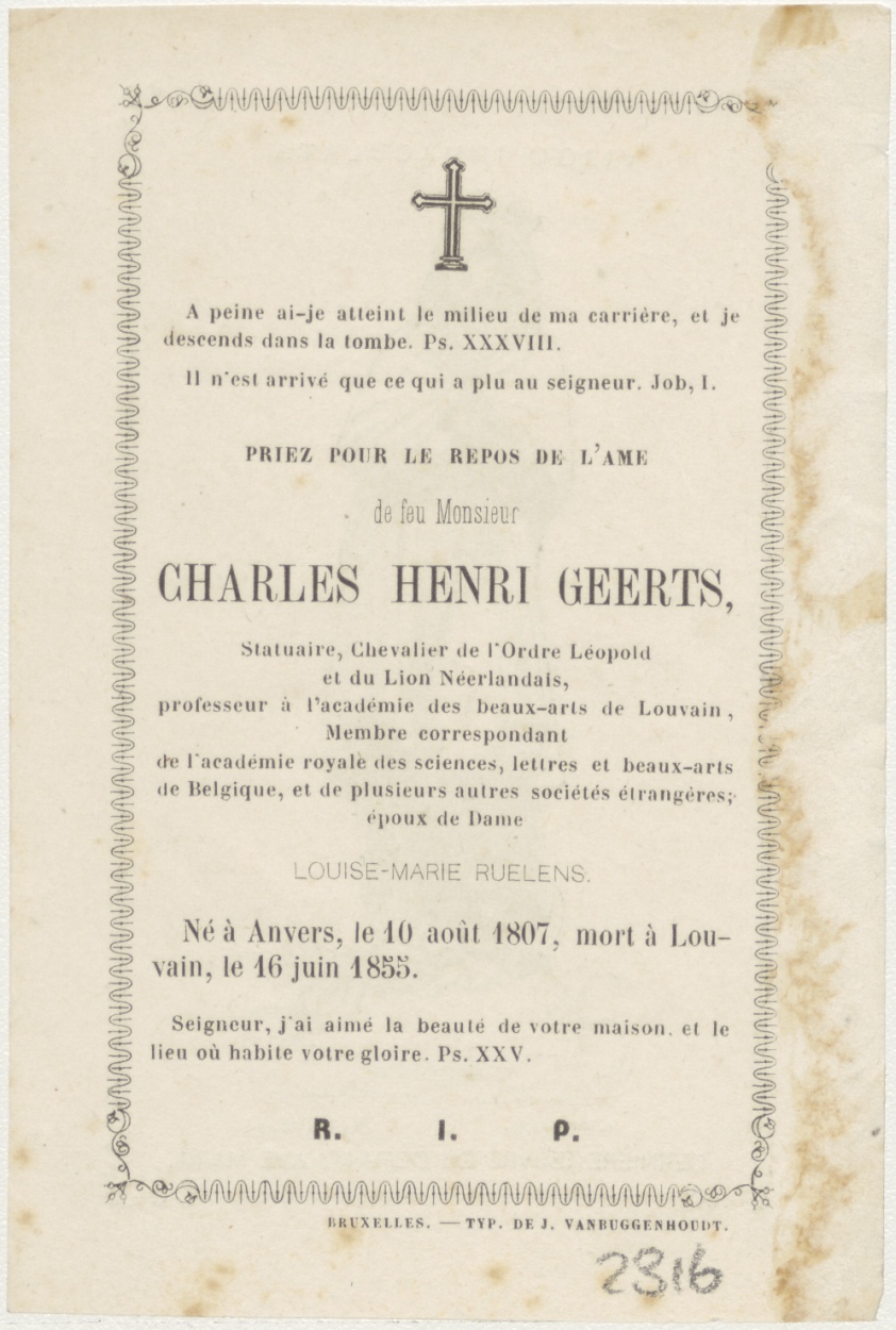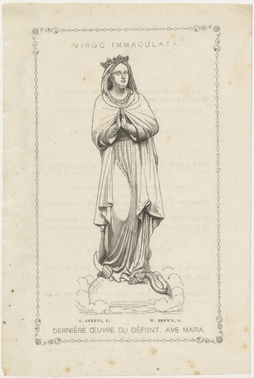Maria, onbevlekt ontvangen (Frans), kz. Bid voor ziel Charles Henri Geerts (+1855);Leuven;kunstenaar;