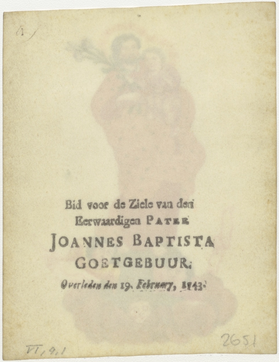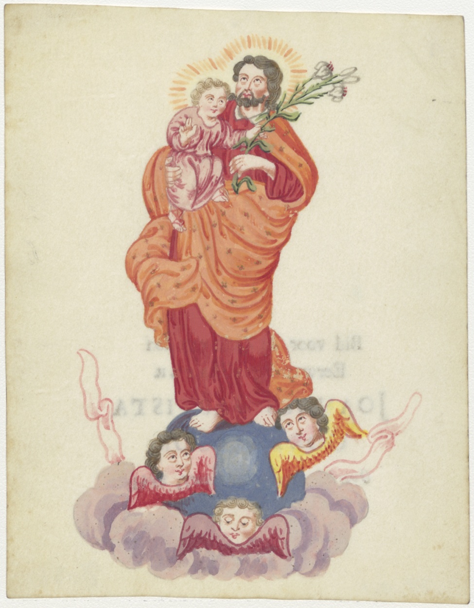 H. Jozef met Christuskind, kz. Religieus;Bid voor ziel Joannes Goetgebuur (+1743);
